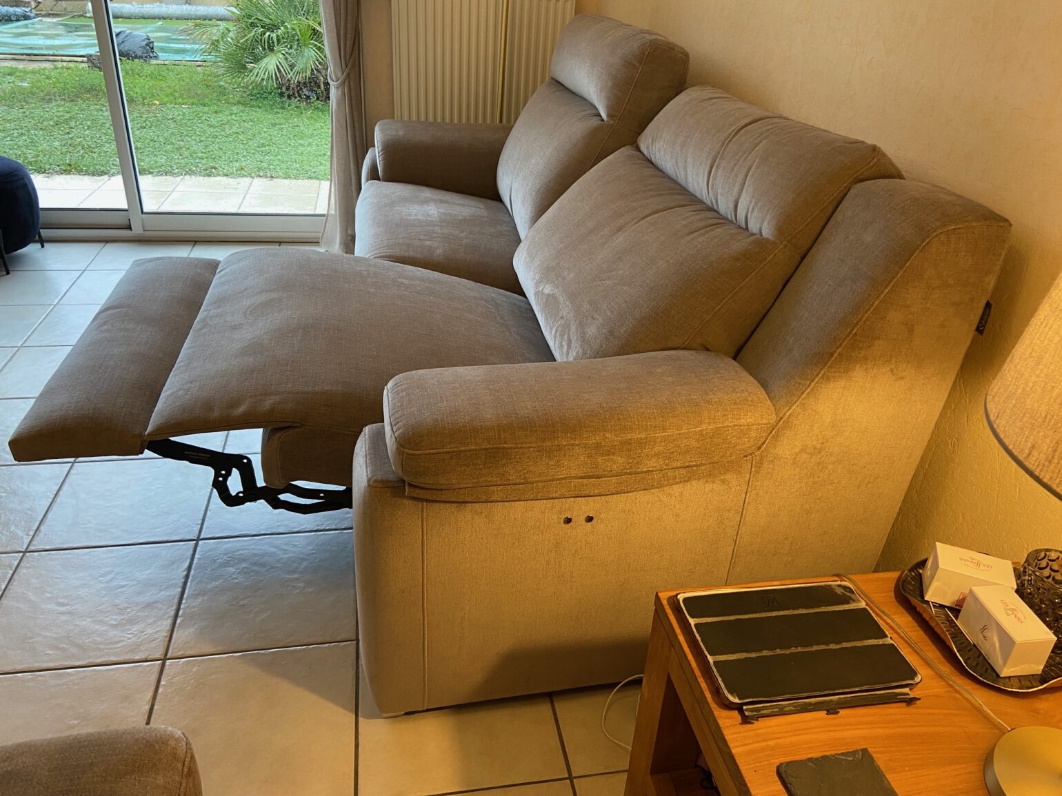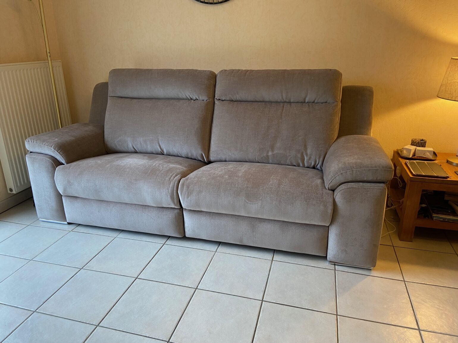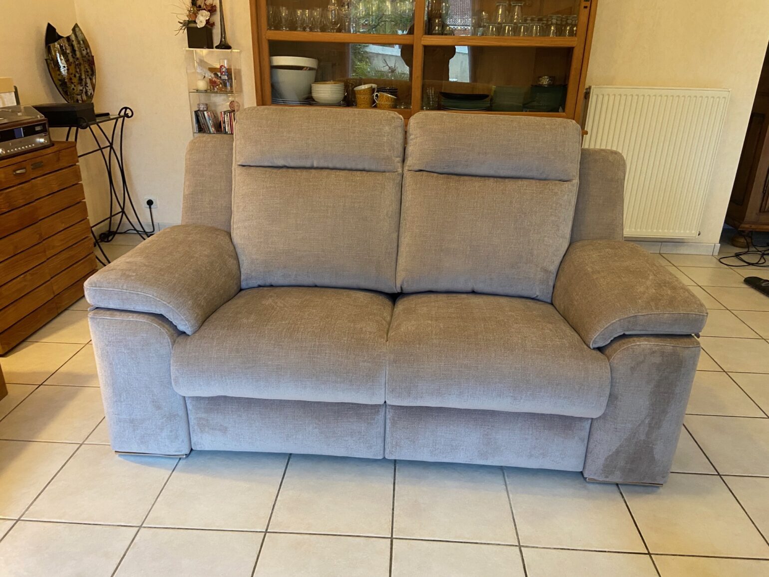 Il y en a un qui est deux places relax électrique et un fixe. Réalisable en de nombreux tissus et dimensions.