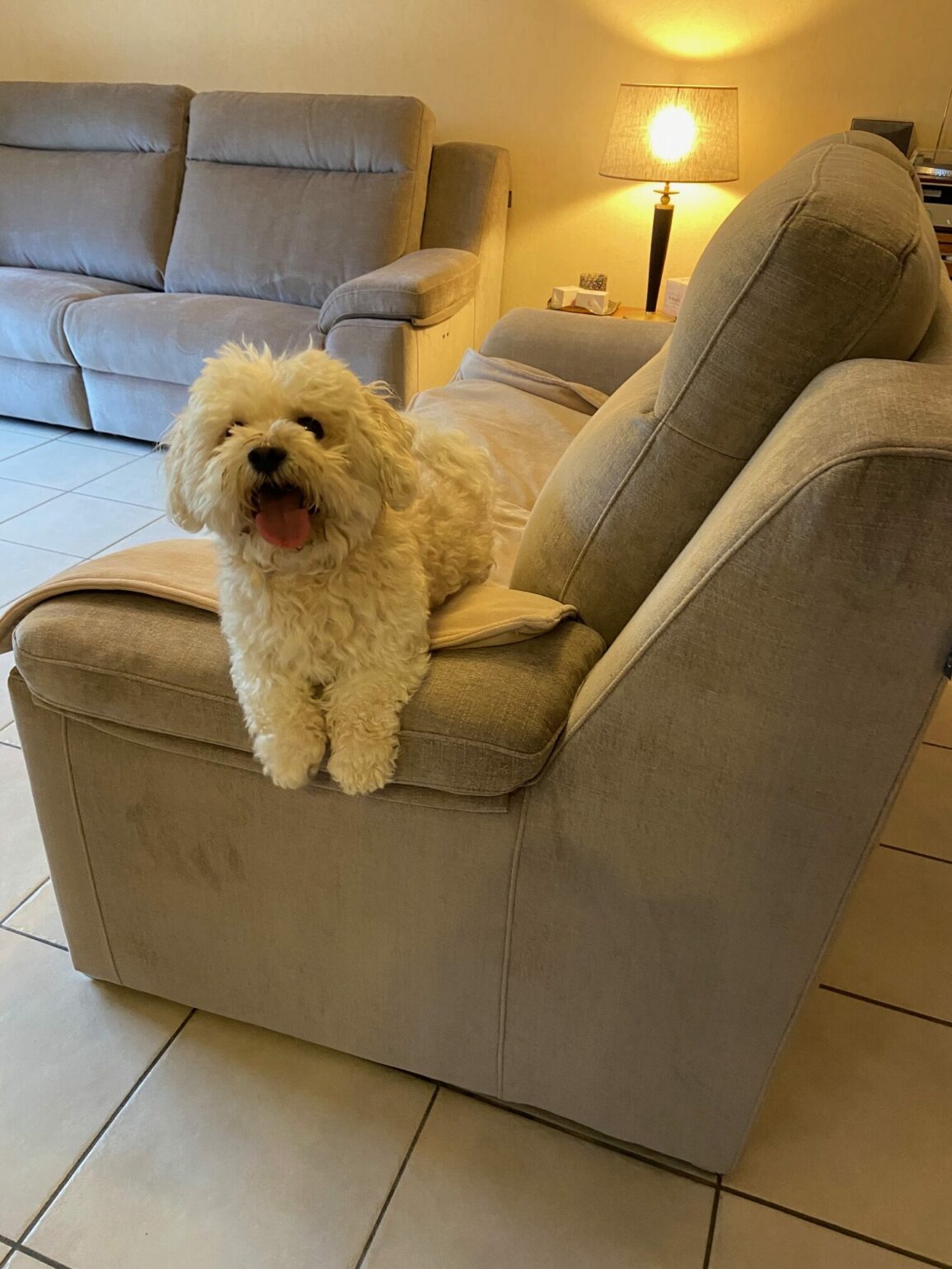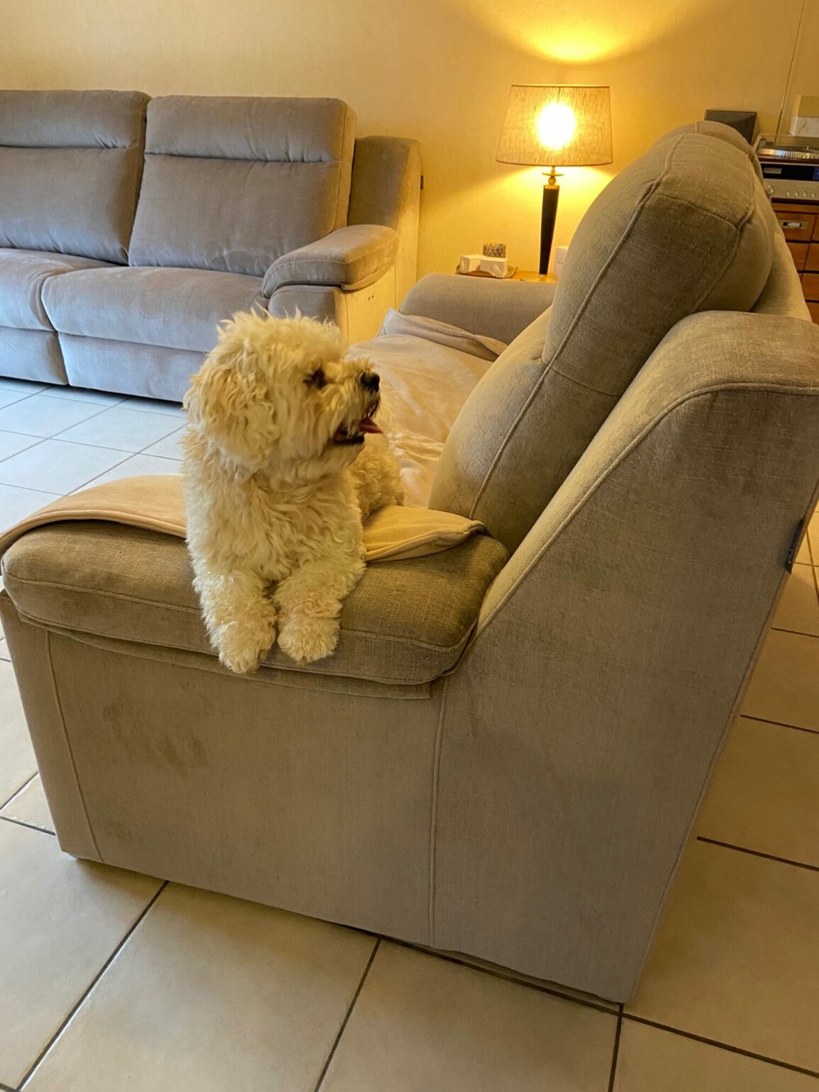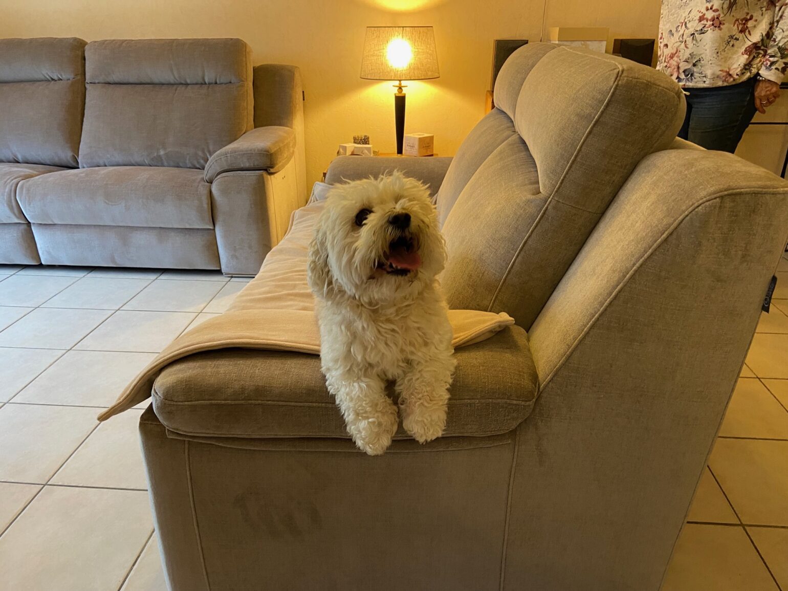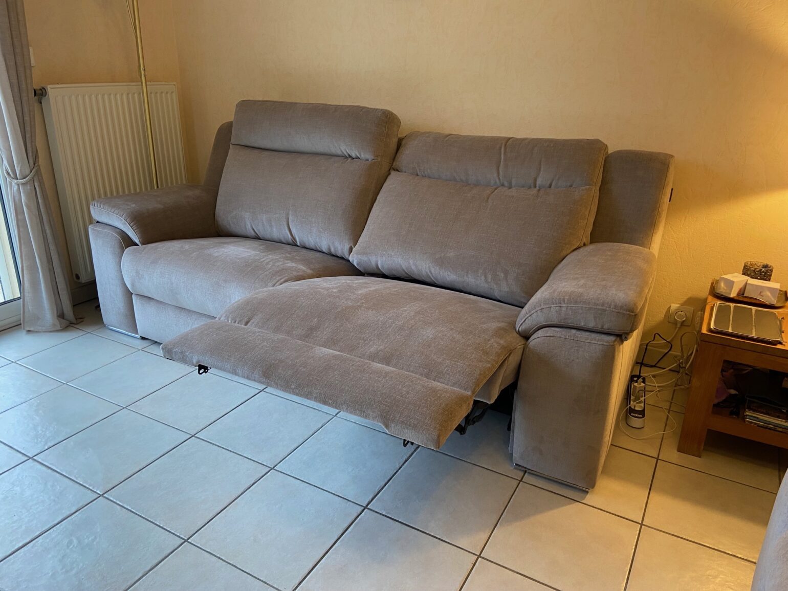 Il y en a un qui est deux places relax électrique et un fixe. Réalisable en de nombreux tissus et dimensions.