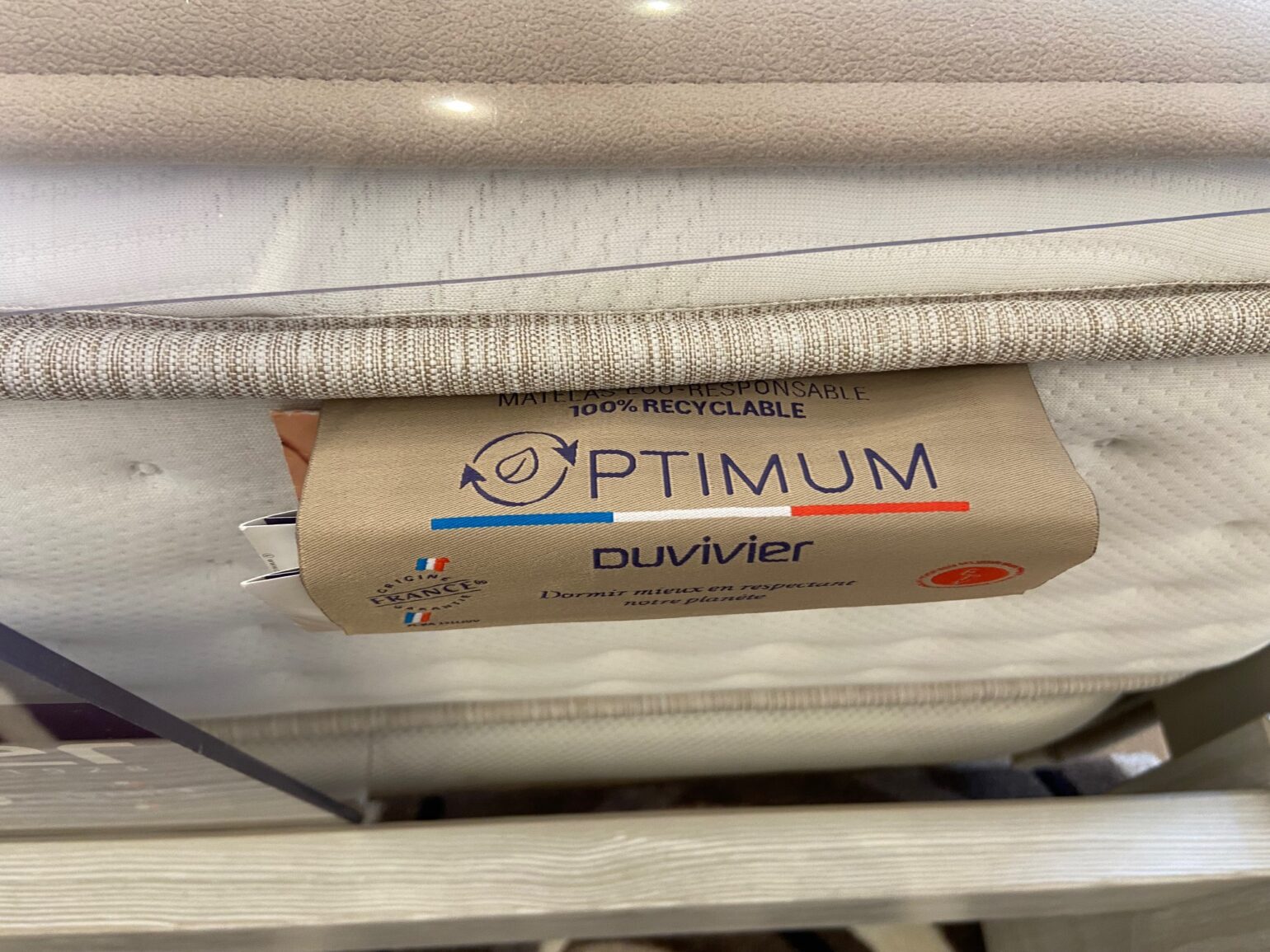 Mono face et conçu a base de produit recyclé. 100 % recyclable, avec ses ressorts ensachés et ça mousse d’accueil enveloppante.