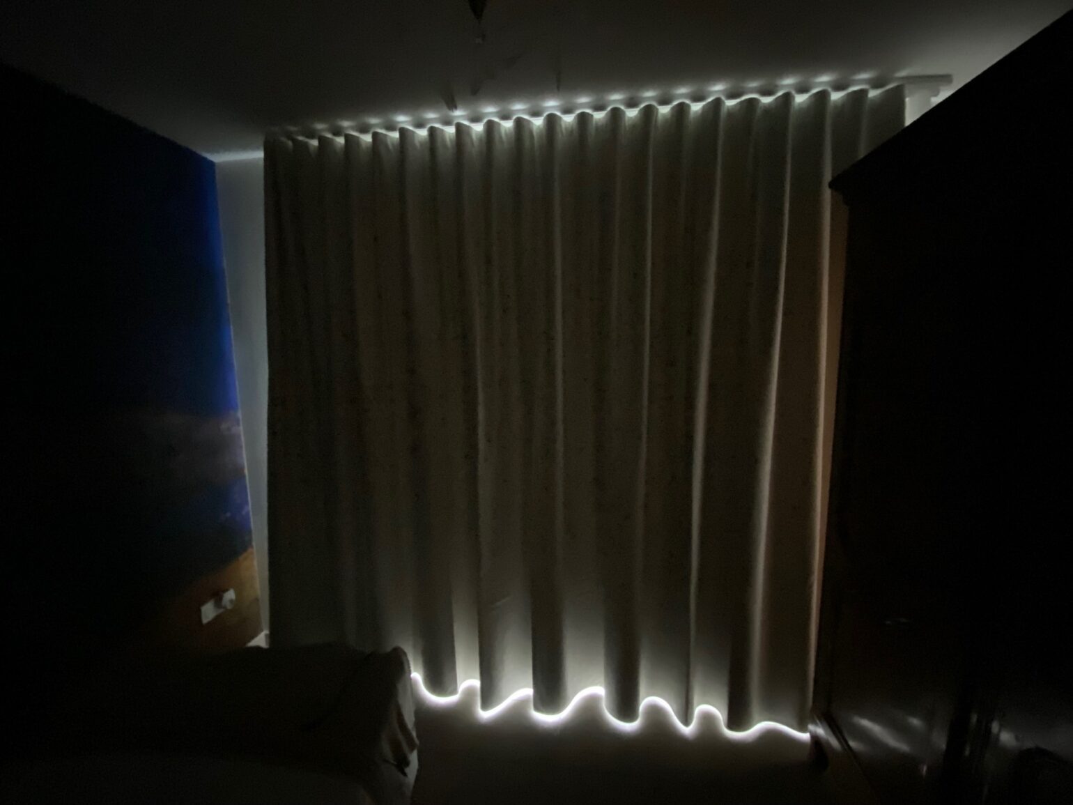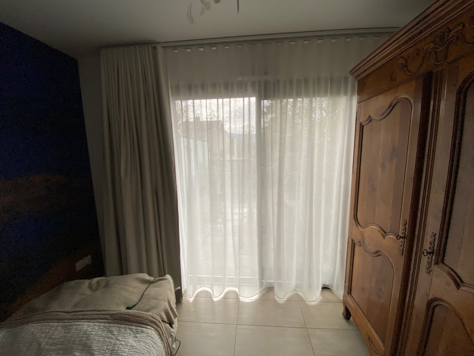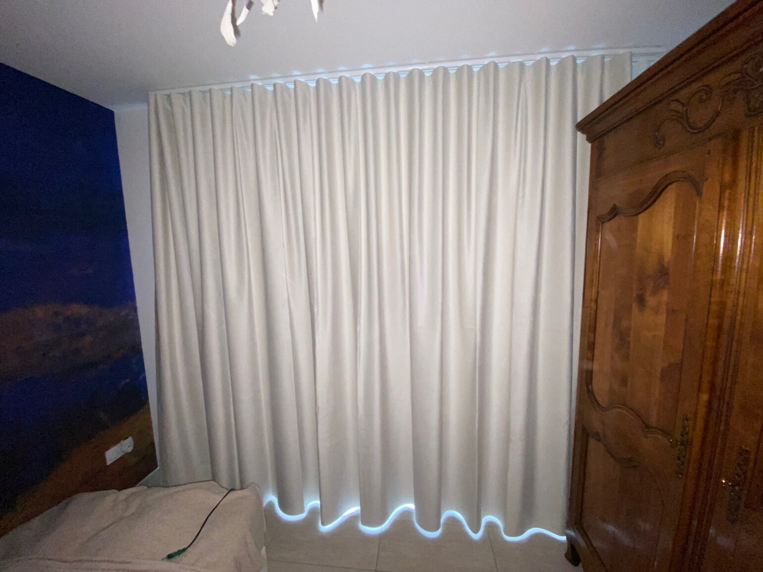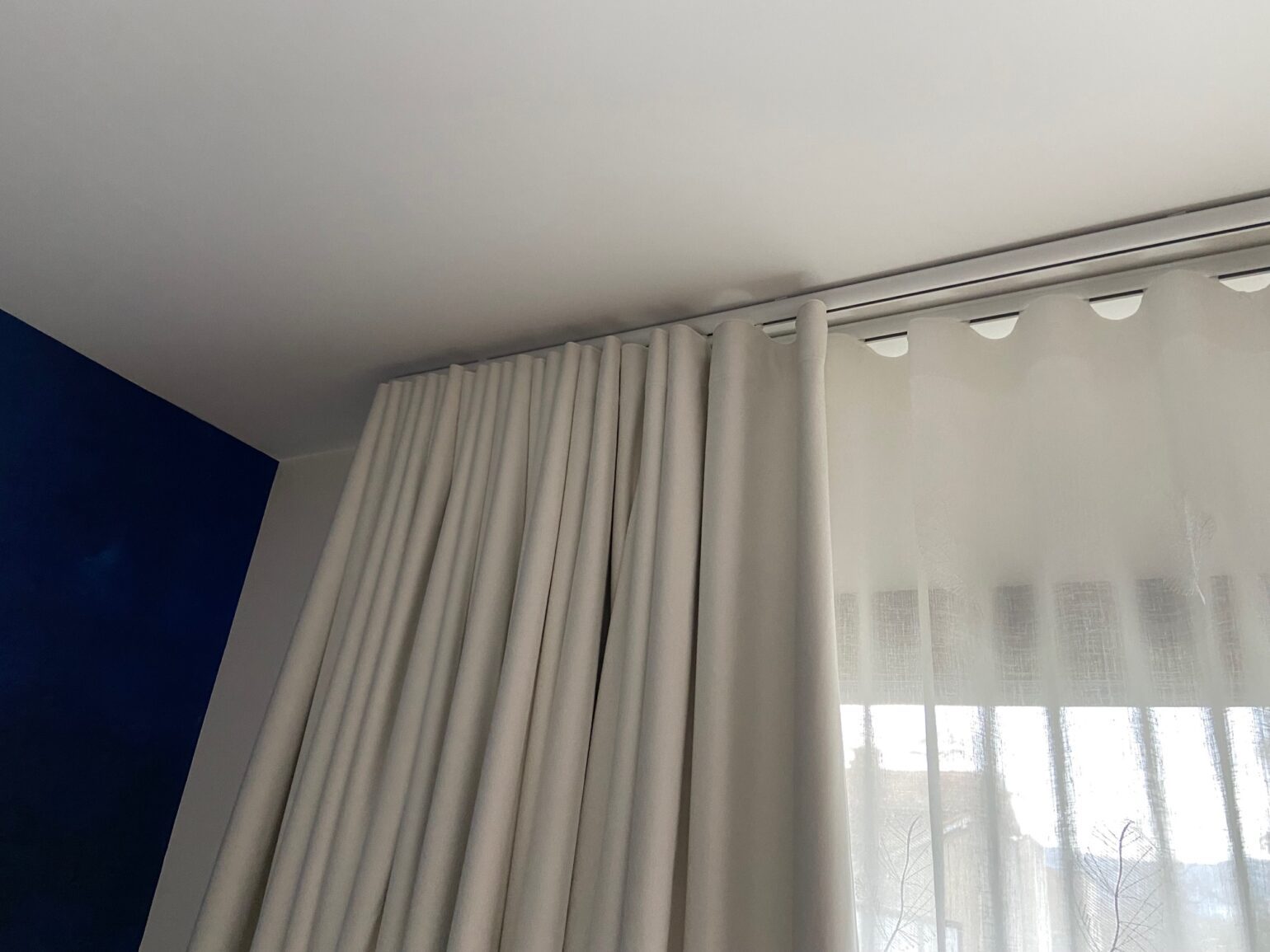 La cliente souhaitait occulter la lumière dans sa chambre, et avoir un voilage pour la journée.