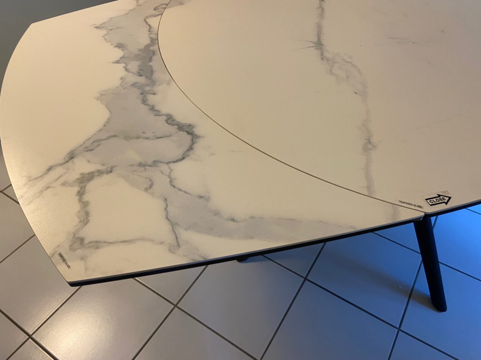Plateau en céramique sur verre, pieds et système métal